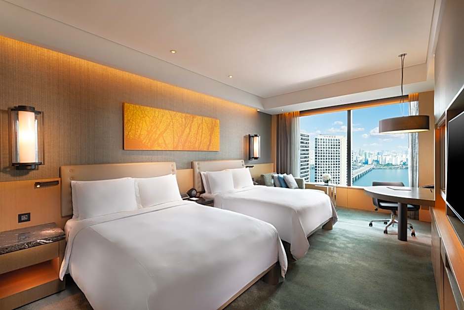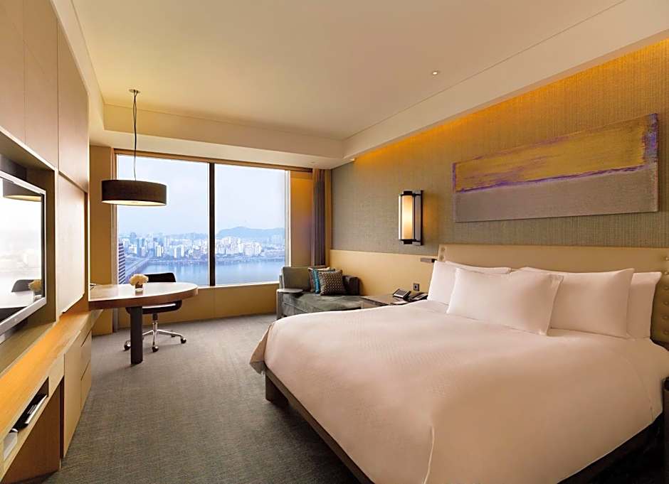 Overlooking the Han River from a high floor, this luxurious air-conditioned room comes with Smart Technology multimedia systems, a Nespresso coffee machine and a sofa. The private bathroom has a rain shower and a free-standing bathtub.